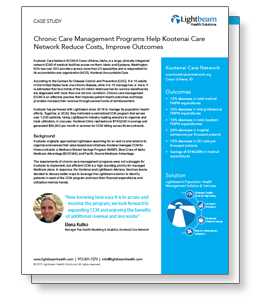 Estimates show that more than two-thirds of the 40 million Medicare fee-for-service beneficiaries are diagnosed with more than one chronic condition. Leveraging Lightbeam’s industry-leading analytics, Kootenai Care Network, a large, clinically integrated network that spans northern Idaho and Spokane, Washington, transformed their chronic care management programs into data-driven patient engagement campaigns. The results were phenomenal—better patient outcomes, reduced unnecessary utilization, and significant savings.